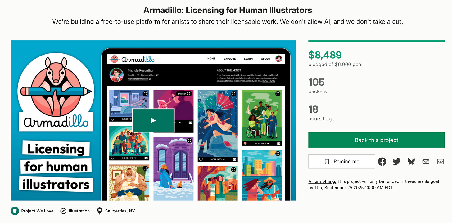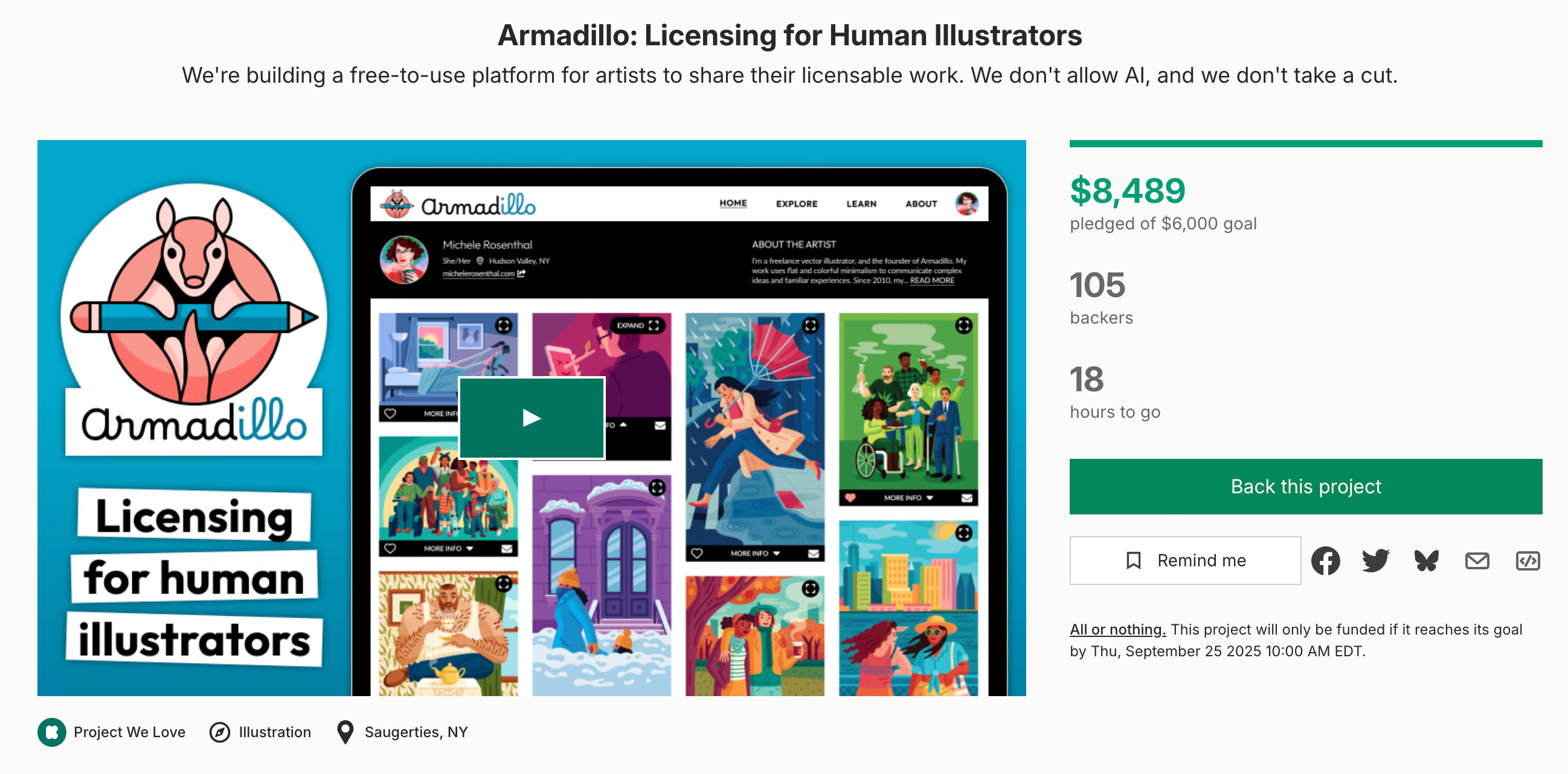 If you want to support our Kickstarter, you still have until tomorrow morning to do so. With one day remaining, we’ve raised over 140% of our goal to launch a licensing website for illustrators, but every bit helps!